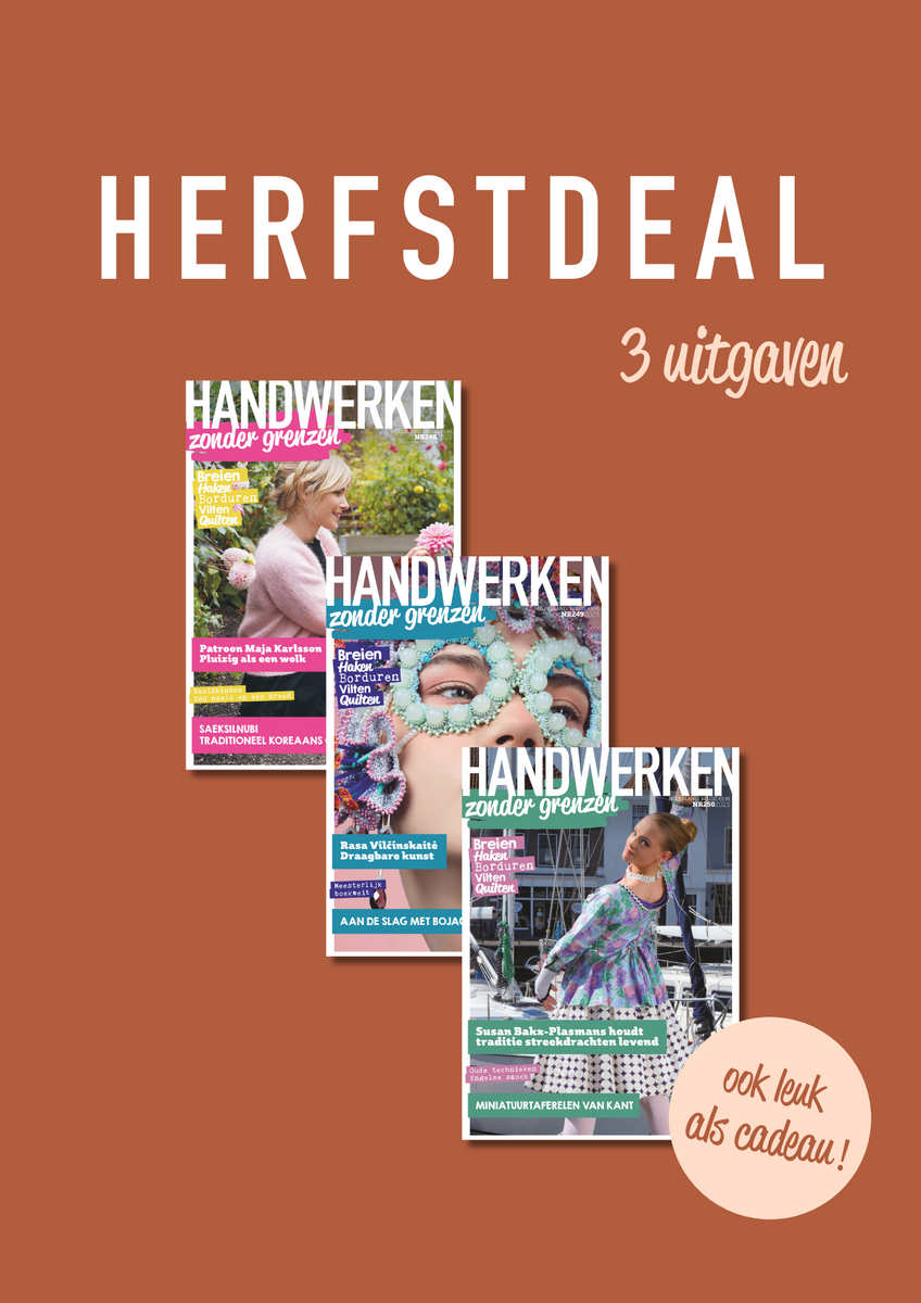 Laat je inspireren door de warme kleuren van de herfst en kom helemaal tot rust met Handwerken Zonder Grenzen. Boordevol creatieve ideeën, patronen en verhalen die jouw volgende project tot leven brengen.
